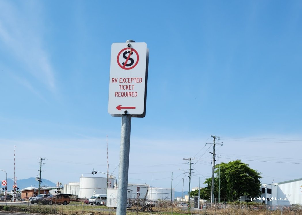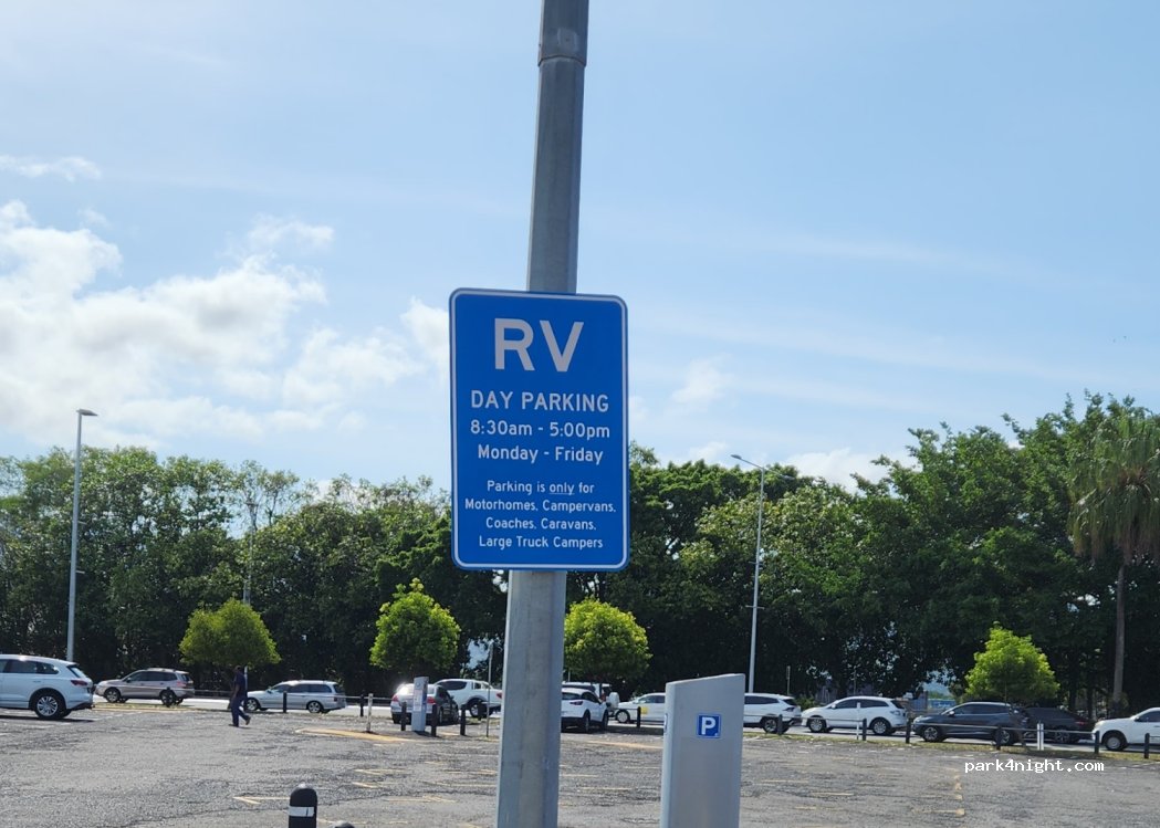 Day parking only for larger campervans. Smaller car-sized vans must park in separate parking area and pay daily fee. Short walk from car park to reef boat wharves (about 10min), Rusty's markets, (5 min), and Cairns city (about 10 min).