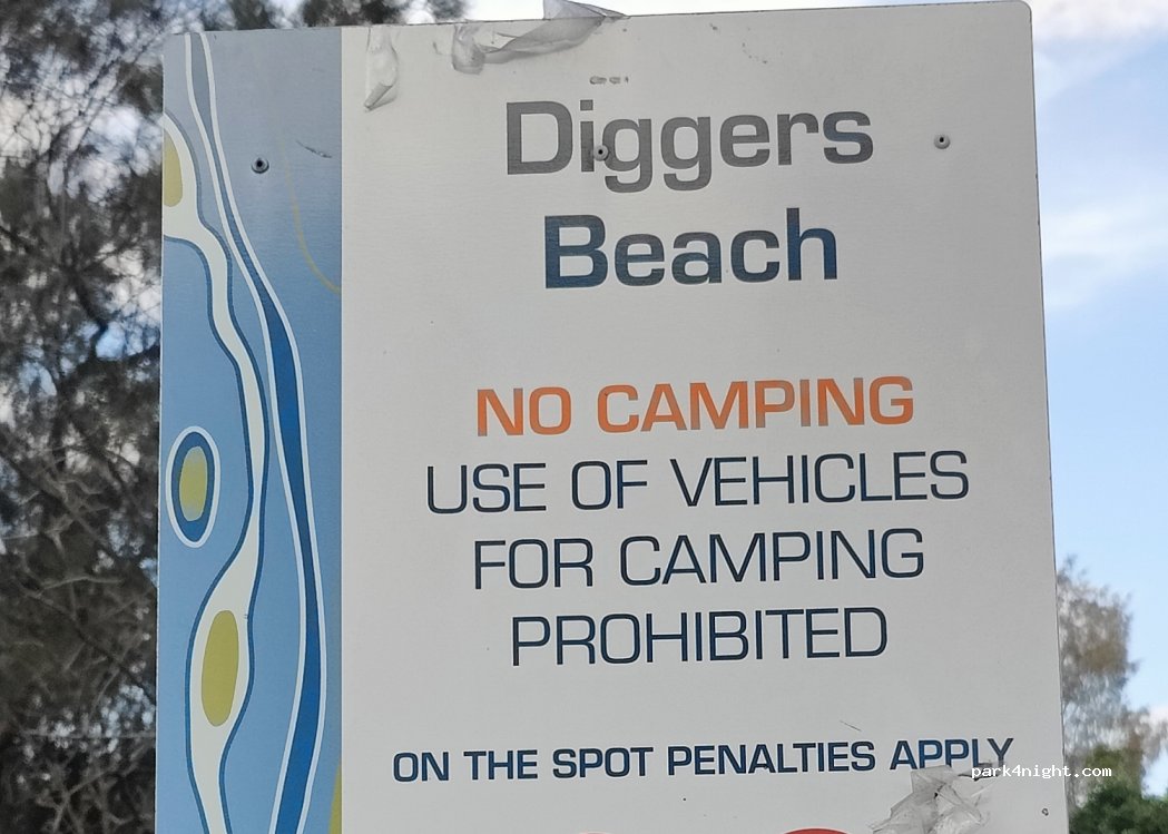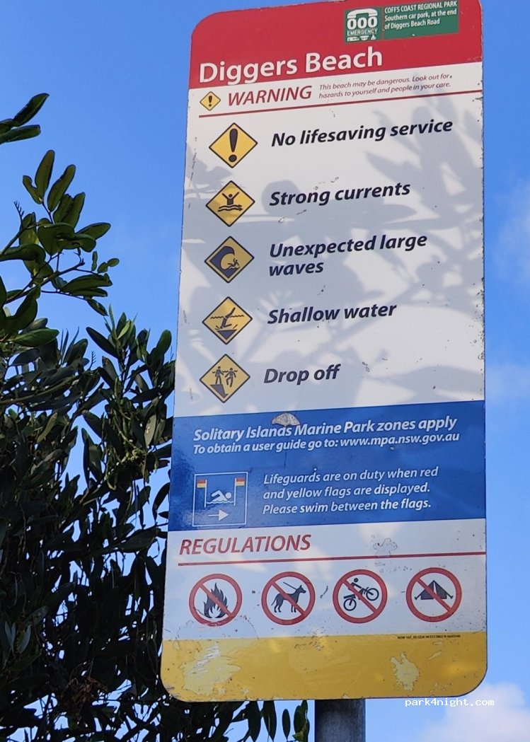 Beautiful free parking spot at Diggers Beach north off Coffs Harbour. V quiet in October and could easily take up 3 spaces in our 8m motorhome. Could get busy in high season as popular with surfers. Toilets and picnic tables. No overnight parking/ camping.
