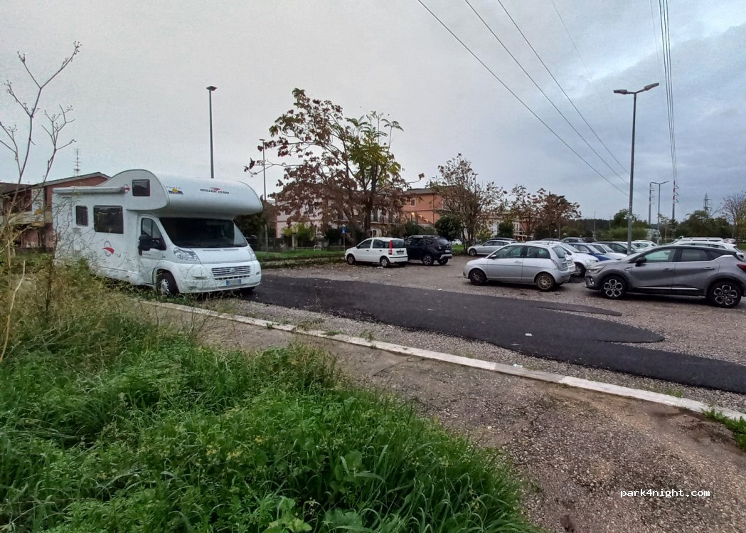 Grand parking facile d’accès. À proximité de la gare (moins de 10min à pieds). Billet pour se rendre à Rome 1€ ! Pas de services. Nous y avons passé 3 nuits pour visiter Rome, pas de soucis.