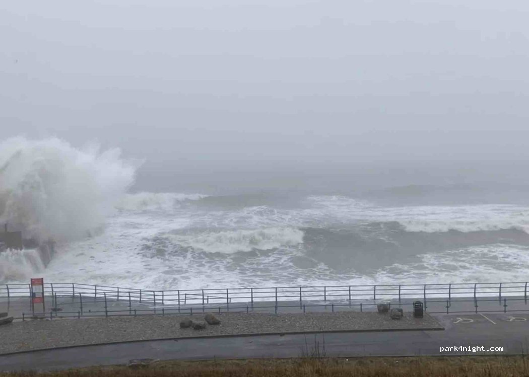 I’m a local and visit this beach frequently. I would NOT stay the night. If you decide to stay the night, check the tides. DO NOT park here during spring tides if there is a storm at sea. The best case scenario is that your van will be pelted by small stones from the waves. It’s very beautiful at low tide, but also lonely and in a tough part of town, with only one exit if you need to leave.