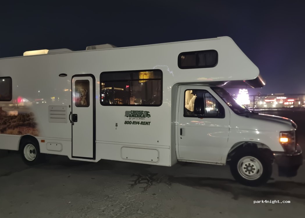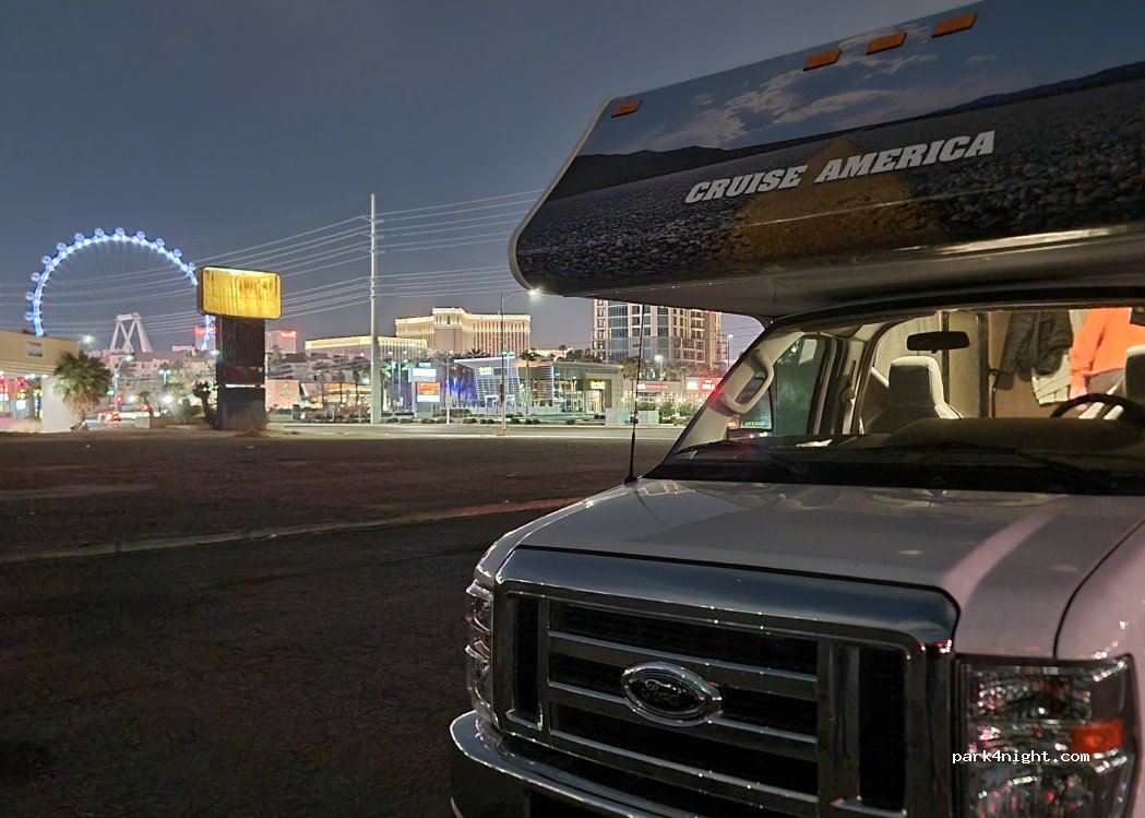 Effectivement, on entend beaucoup les avions. Mais la proximité avec le Strip et son emplacement, en fait de cet endroit un lieu parfait pour découvrir Las Vegas. Nous sommes restés 3 nuits ici, il y avait d’autres camping car avec nous. Aucun service, mais je conseil d’utiliser les toilettes du food court à 10-15mn à pied en direction du strip