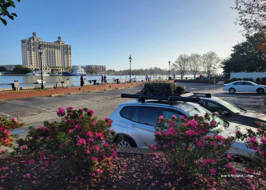 Endroit extraordinaire directement sur la rue principale qui est vraiment chaleureuse avec plein de boutiques et restaurants et terrasse. Magnifique endroit au bord de l’eau avec plusieurs bateaux qui passent, très gros parfois, impressionnant. Gratuit entre 20h et 8h am. Parfait pour une nuit.
