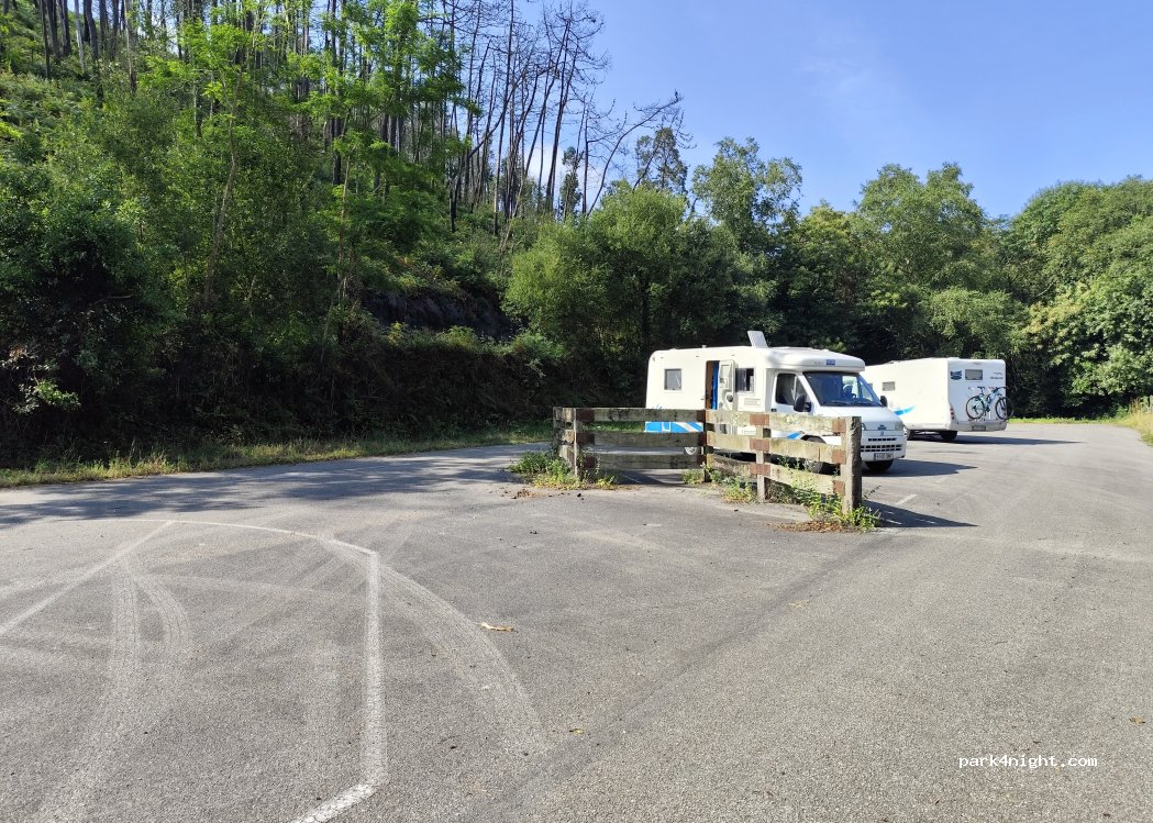 An area with large, demarcated spaces with drinking water and electricity in each space. It features hot showers (also for transit users), restrooms, a Wi-Fi zone, free bike rentals, electric scooter rentals, a swimming pool, a barbecue grill, a picnic area, a playground, daily bread and pastries, and a laundry area with a washing machine and dryer.