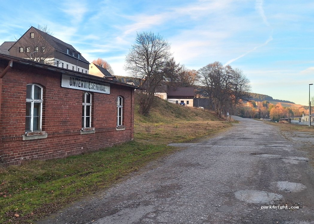 Parkplatz am Bahnhof Unterwiesenthal von der Fichtelbergbahn.