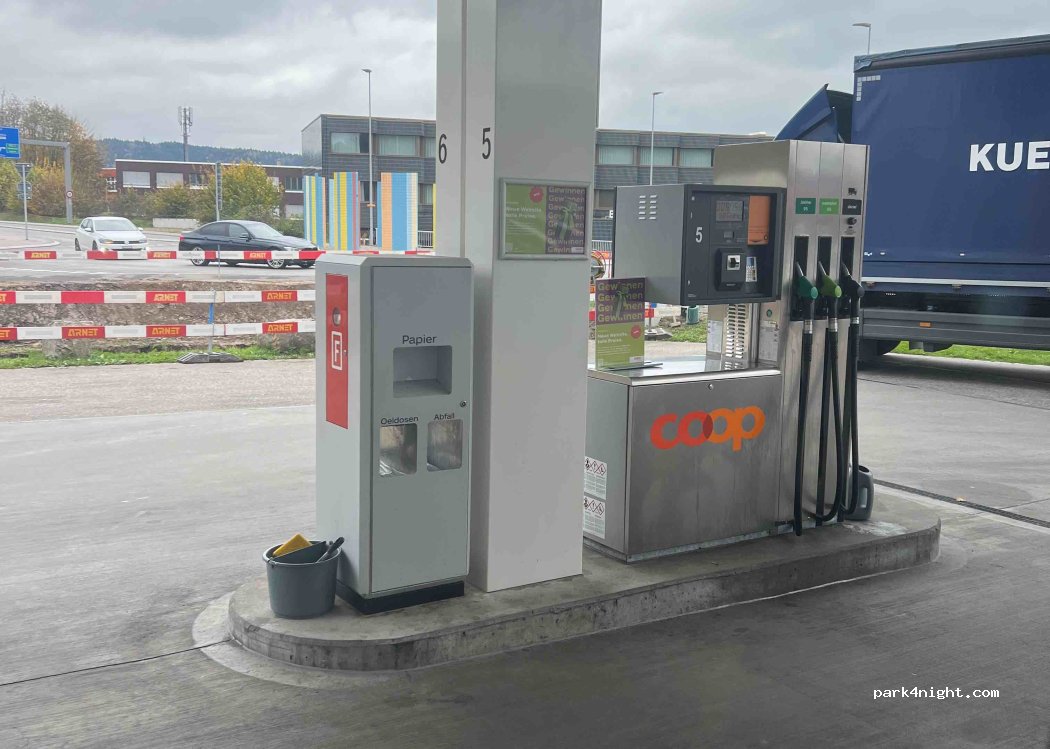 Tankstelle, an der Gasflaschen verkauft werden und die auch als Nachfüllstelle dient. Wenn Sie nach einem Wasserabsperrventil fragen, können Sie auch Trinkwasser nachfüllen