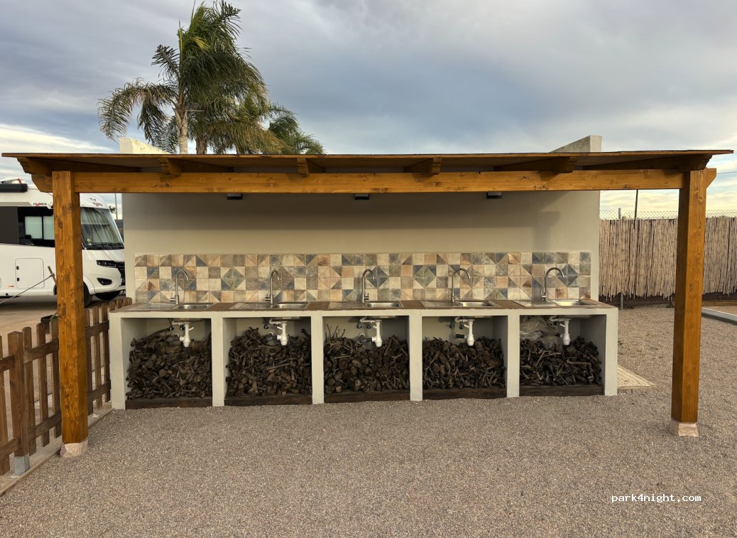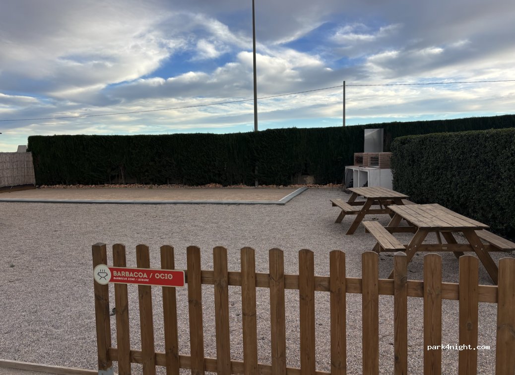 Sitio limpio y muy bien organizado. Tiene todos los servicios que hacen falta. Plazas con agua, y si se quiere también con luz. Noche tranquila. Todas las mañanas llega un coche vendiendo pan fresco, muy rico! Se puede llegar a Cartagena en autobús, la parada esta a 10 minutos andando. En el pueblo hay supermercado. Hemos pasado una estancia agradable y volveremos cuando pasemos por la zona.