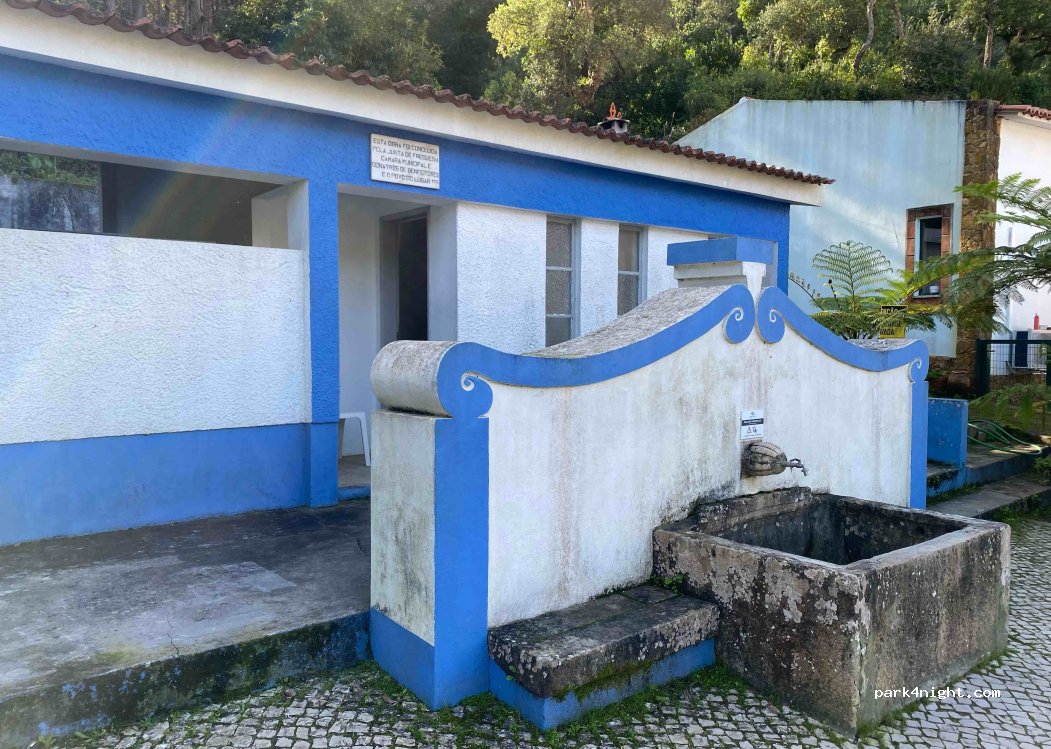 Je ne sais pas si l’eau est chaude mais y’a douches et toilettes, une station de lavanderie traditionnelle, une fontaine à eau (eau non contrôlée)
