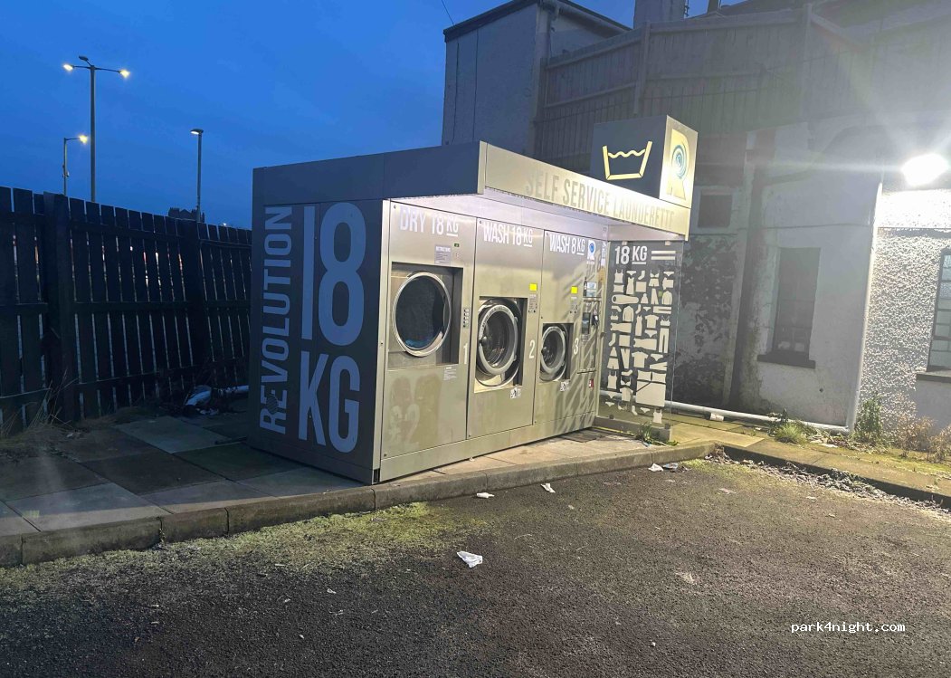 This is in the Black Rooster pub car park. Easy parking. Seemed to wash okay - not the cleanest results we’ve had, but fine. The dryer doesn’t get very hot, so use the very hot setting if you want to get things dried. Used both washers and the dryer - £27!!!