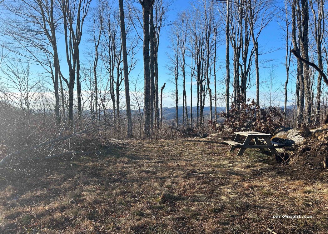 Hay 2 o 3 parcelas en la montaña (1.400 metros sobre el nivel del mar) con mesas de picnic y un lugar para hacer fuego. La parcela inferior está marcada por la tormenta, pero las dos parcelas de la cima tienen una vista maravillosa. ¡Sin embargo, la parcela en la cruz es relativamente recta! Parcela 4x4, porque definitivamente necesitas tracción a las cuatro ruedas para los últimos 700 m, independientemente del clima, porque el camino de grava es malo y tiene grandes baches. Subimos con nuestro Sprinter 4x4 sin ningún problema. ¡Tienes que pasar por un túnel, así que no subas más de 3,40 m!