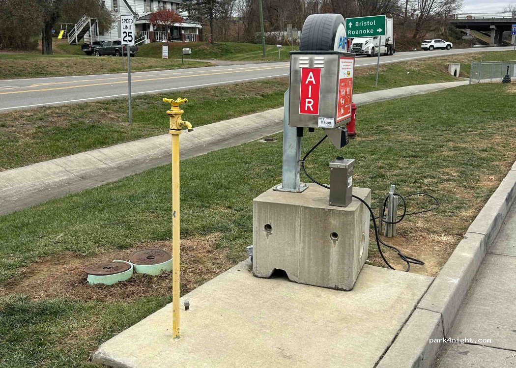 An der Love‘s Tankstelle gibt es kostenloses Frischwasser. Der gelbe Hahn war im Winter abgestellt (an der Luftstation). Die blauen Wasserhähne an den Zapfsäulen sind sogar im Winter angestellt!!