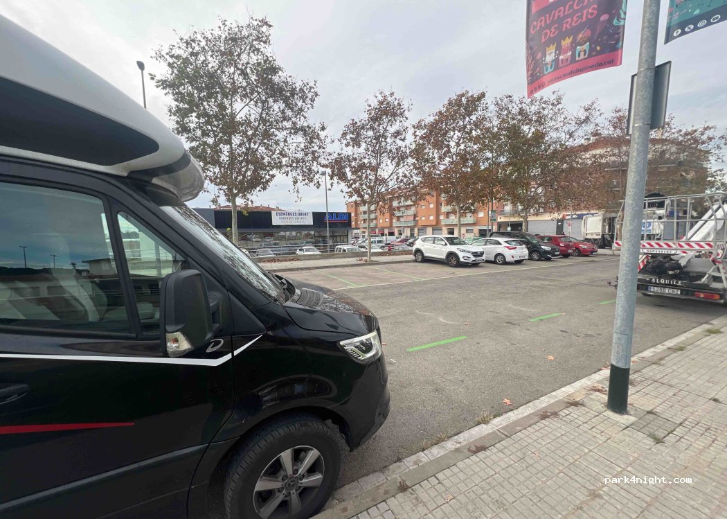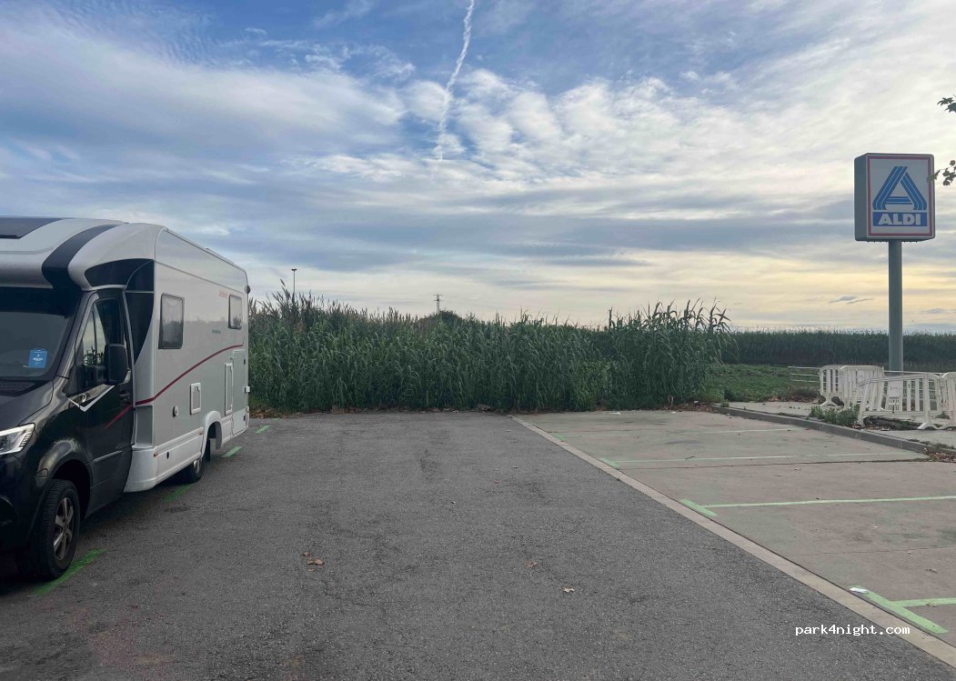 Bonjour, le parking d'ALDI est à environ 400 mètres, la police est cool et sympathique