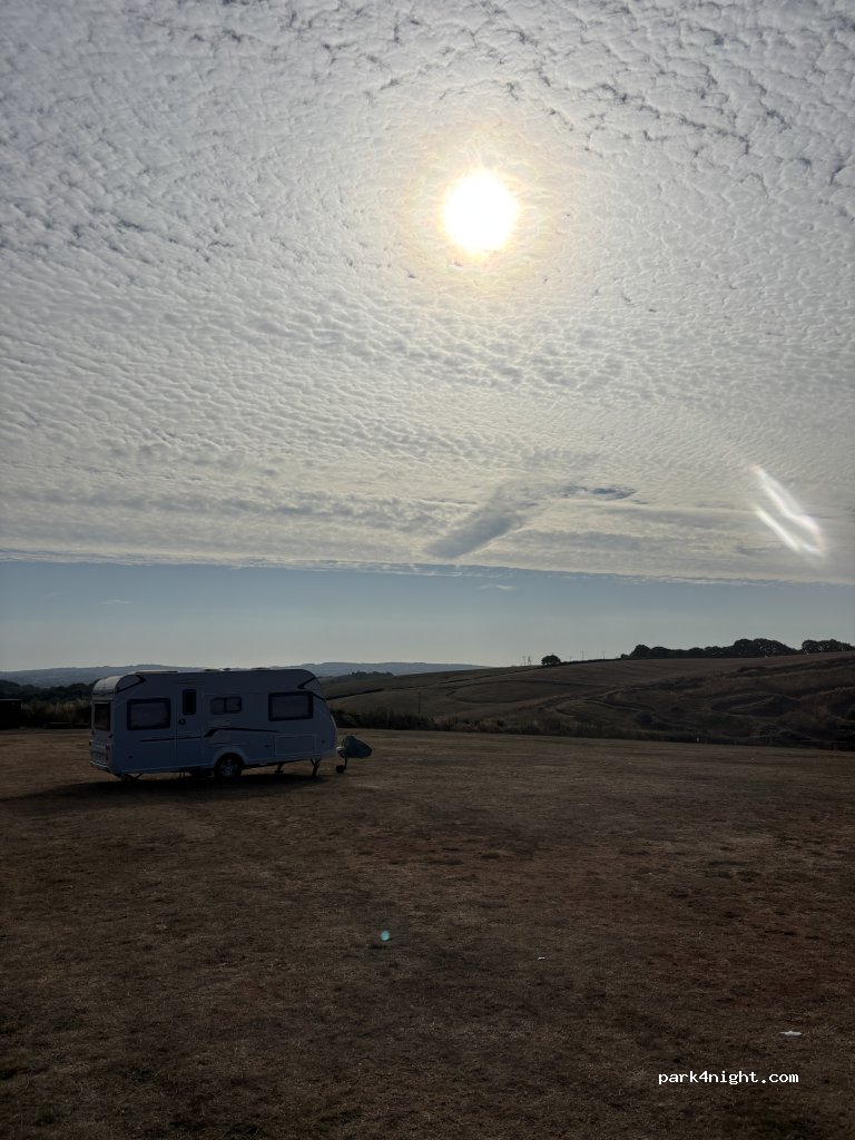 Very quiet! Views all round. Clean and friendly. We stayed for 1 night enroute to Plymouth. It cost £10 and just ring in advance. They are very friendly!!