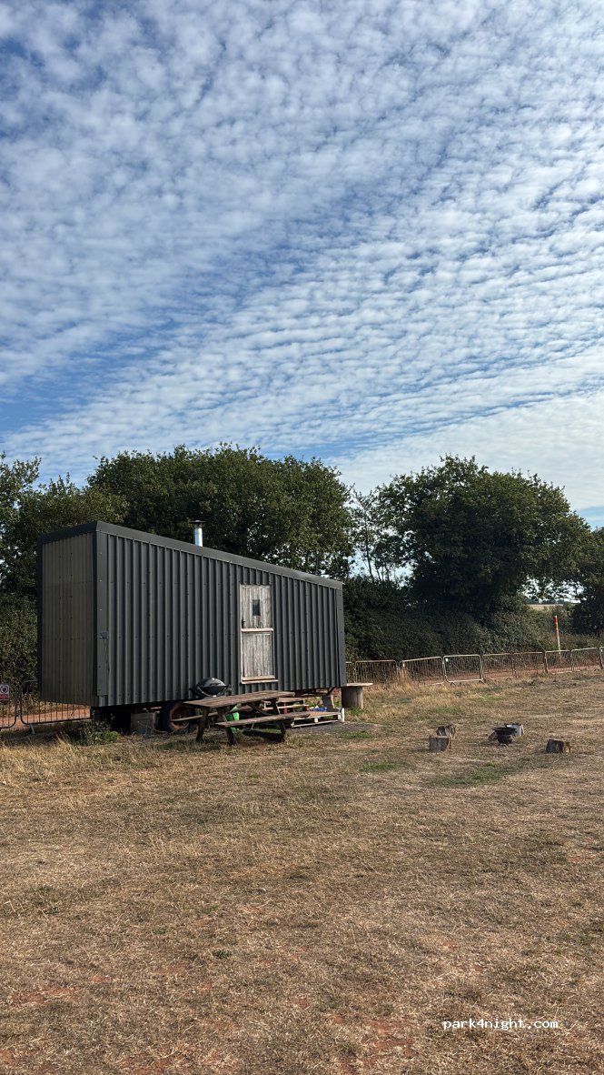 The location is very secure with a padlocked gate on entry and there is a dirt track up a slight hill to get to the field. If you're feeling fancy they also have a cute air b&b cabin with a double bed on a raised level, a sofa, single pull-out beds and a wood burner.