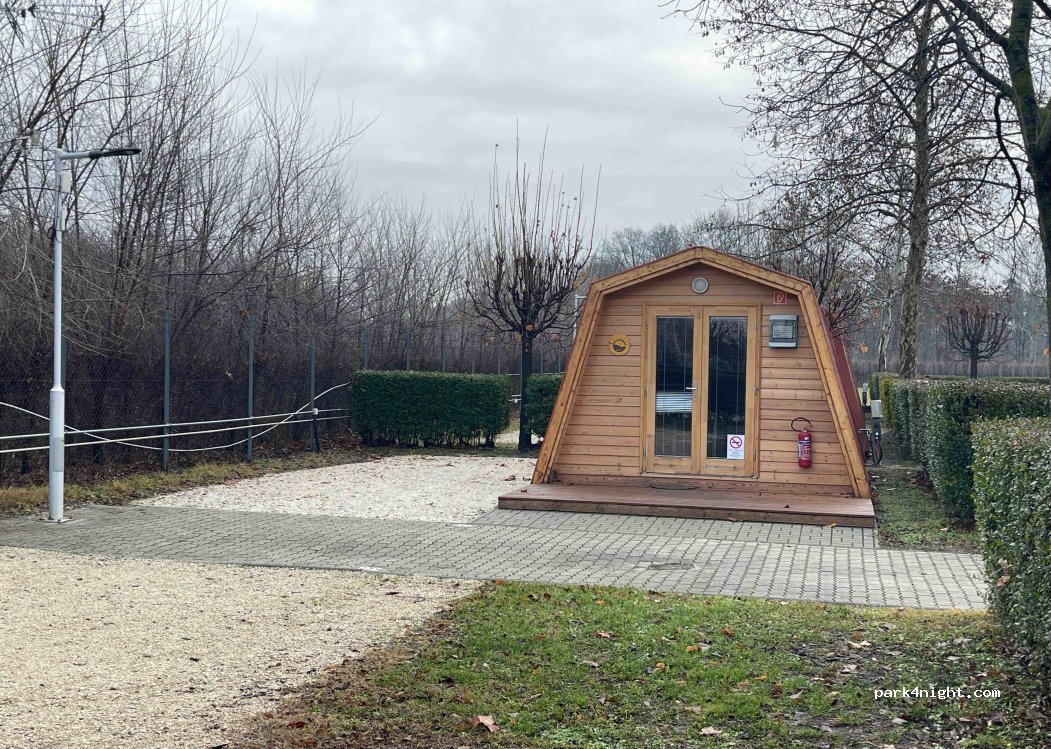 Very nice and well-maintained campsite, next to the RV outdoor parking space. A very new and clean (heated) sanitary building. The whole place is very tidy. The pitches are a good size with paved seating and are fenced in with small hedges. Reception speaks German. The thermal baths (entrance included in the price) next door are nice in winter, but nothing special. (Dirty water and pools)