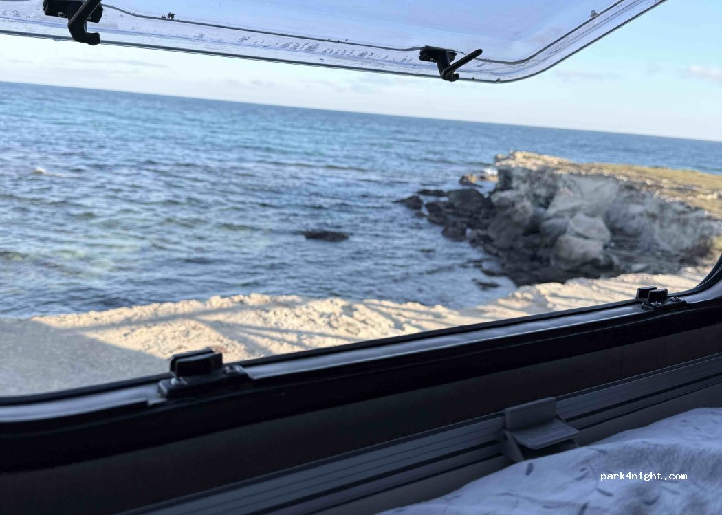 Abbiamo sostato una notte e visto un’alba spettacolare, posto tranquillo. La mattina iniziano ad arrivare auto che parcheggiano lì per andare al mare. A fine agosto quando sono stato posso dire che sono stato benissimo.