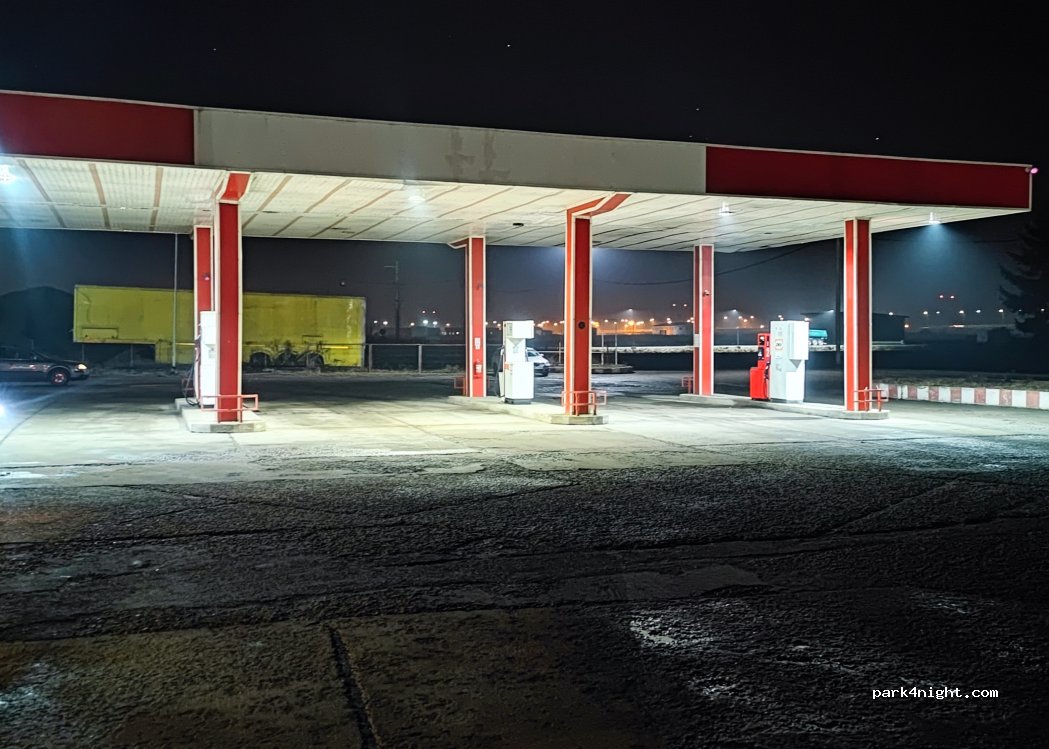 Water tap at the gas station's toilet, with good pressure drinking water. If You have few meters hose, You can fill the tank.