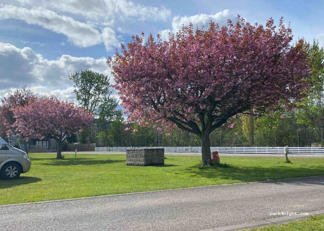 Excellent park very close to Inverness. 30 minute walk along the River Ness. Well organised park. Large lawns with light and water. Grey water disposal area easily accessible. Chemical disposal area next to the toilets. Walking path next to the park along the Caledonian Canal excellent for a walk with the dog.
