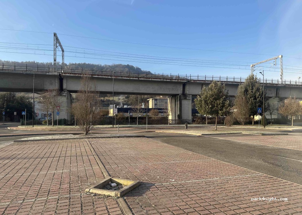 Parcheggio senza nessun servizio ma molto comodo per una sosta anche notturna sebbene rumoroso per via di: Autostrada e treno alta velocità 500m casello autostrada