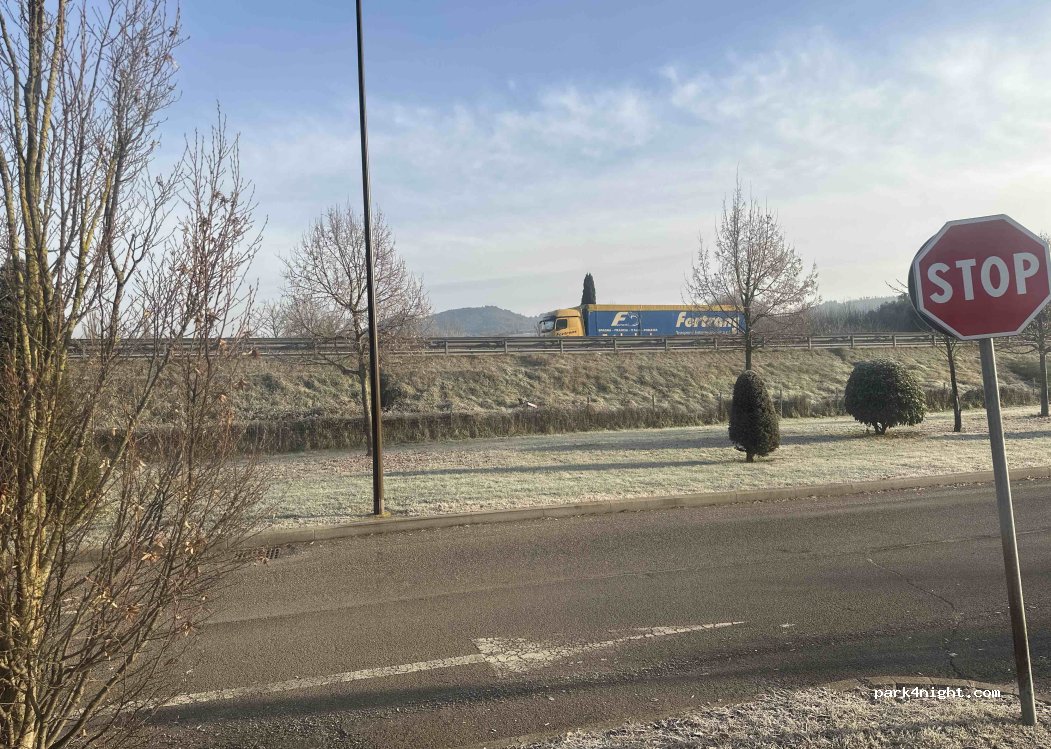 Parking without any service but very convenient for a stop even at night although noisy due to: Highway and high-speed train 500m from the highway toll booth