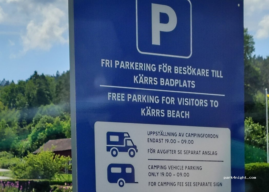 New sign: "Camping vehicle parking only 19h-9h. For camping fee see different sign." We have not found any separate sign in July 2024.