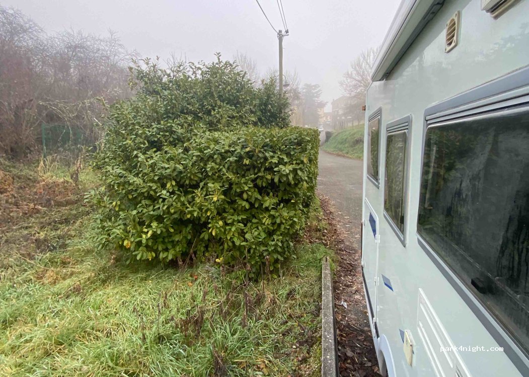 3 or 4 parking spaces along a field. On the day we are there, there is a truck and a camper van. The pitches are not flat, the spaces beyond this field are too steep. BIG ADVANTAGE: you are about a hundred meters from the center of the village and the first shops, then you have to walk 10 minutes to reach the outskirts of the old village.