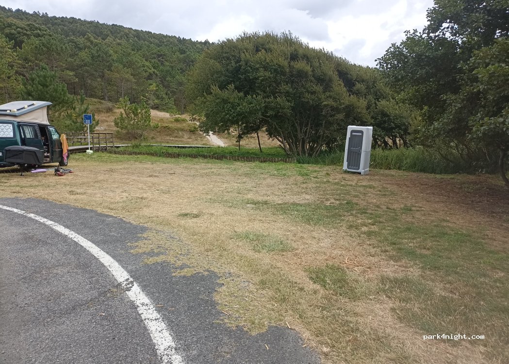 Precioso y tranquilo pinar con explanada de césped para pasar la noche. Sin embargo, la playa no tiene habilitadas las duchas ni la fuente de agua potable. Es una pena porque a estas alturas todas las playas de alrededor tienen lavapiés o duchas, por muy pequeñas que sean.