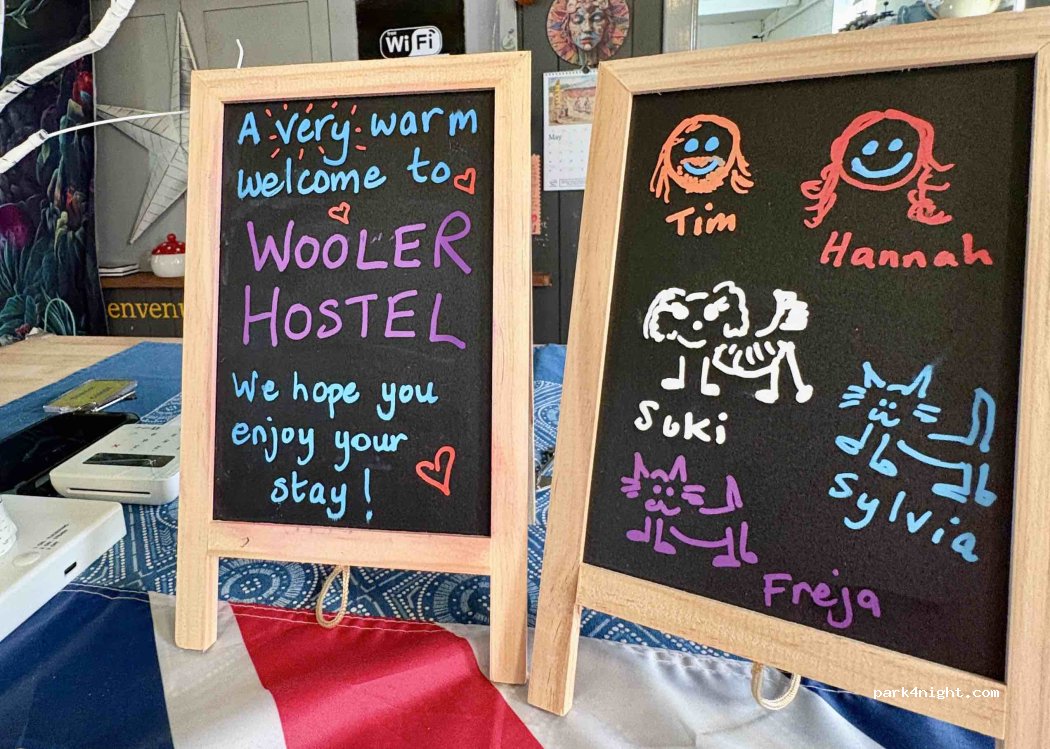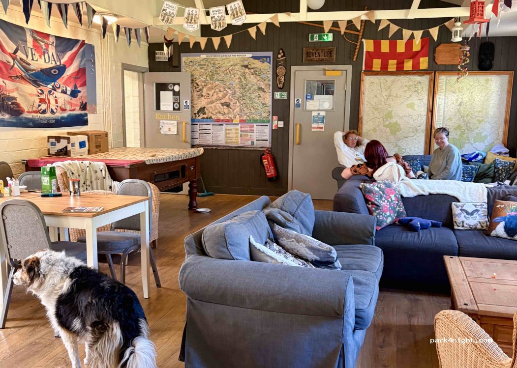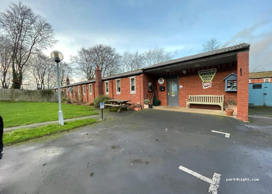 Park for the night at Wooler Hostel. Access to toilets, showers, large self catering kitchen, large common room and lots of outdoor seating.