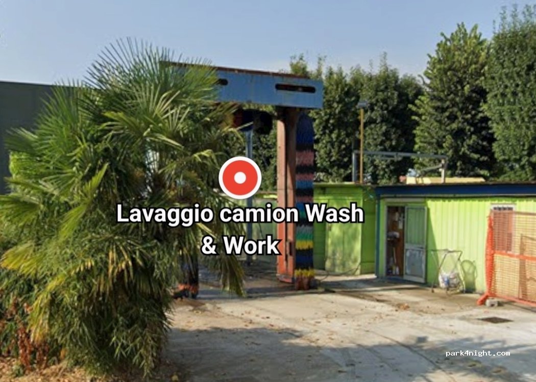 Waschen für Wohnmobile und LKWs. Der Camper wird von zwei Personen recht gründlich manuell gewaschen. Wir waren mit dem Ergebnis zufrieden.
