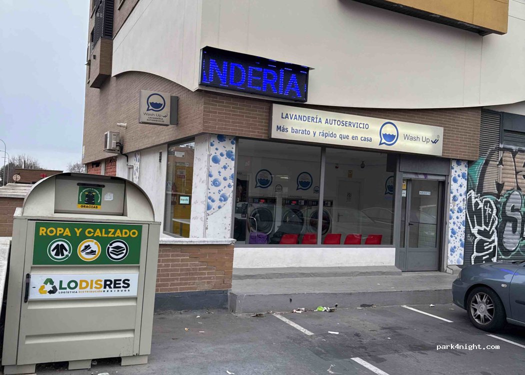 Self-service laundry next to the Día supermarket, with the possibility of using its parking lot with no height limit. There are two 15-kilo washing machines, one 12-kilo washing machine and two dryers. It has a changing machine.