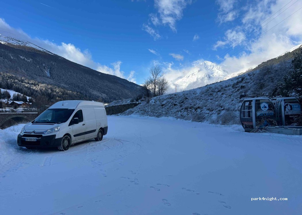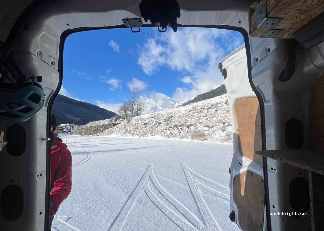 Superbe parking PLAT en surplomb d’une rivière. Le parking est ouvert jour et nuit et est accessible à tout type de véhicules. Possibilité de rejoindre les commerces à pied (20min). Parking très tranquille et peu fréquenté (du moins en saison hivernale).