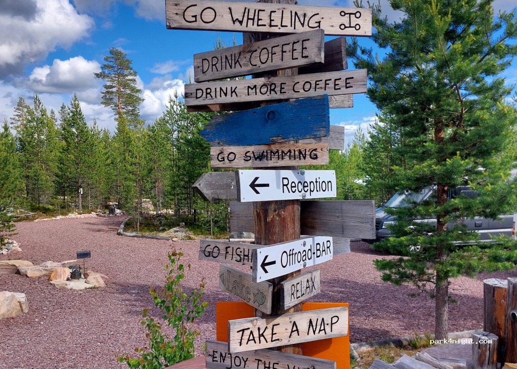 Liebevoll hergerichteter Campingplatz, tolles Offroad-Feeling. Ein Campingplatz ohne Dauercamper, auf dem man sich als Durchreise-Gast super willkommen fühlt. Haben spontan zwei Regentage in einer Hütte verbracht. Zu empfehlen sind auch die selbstgemachten Rentier und Elchburger.