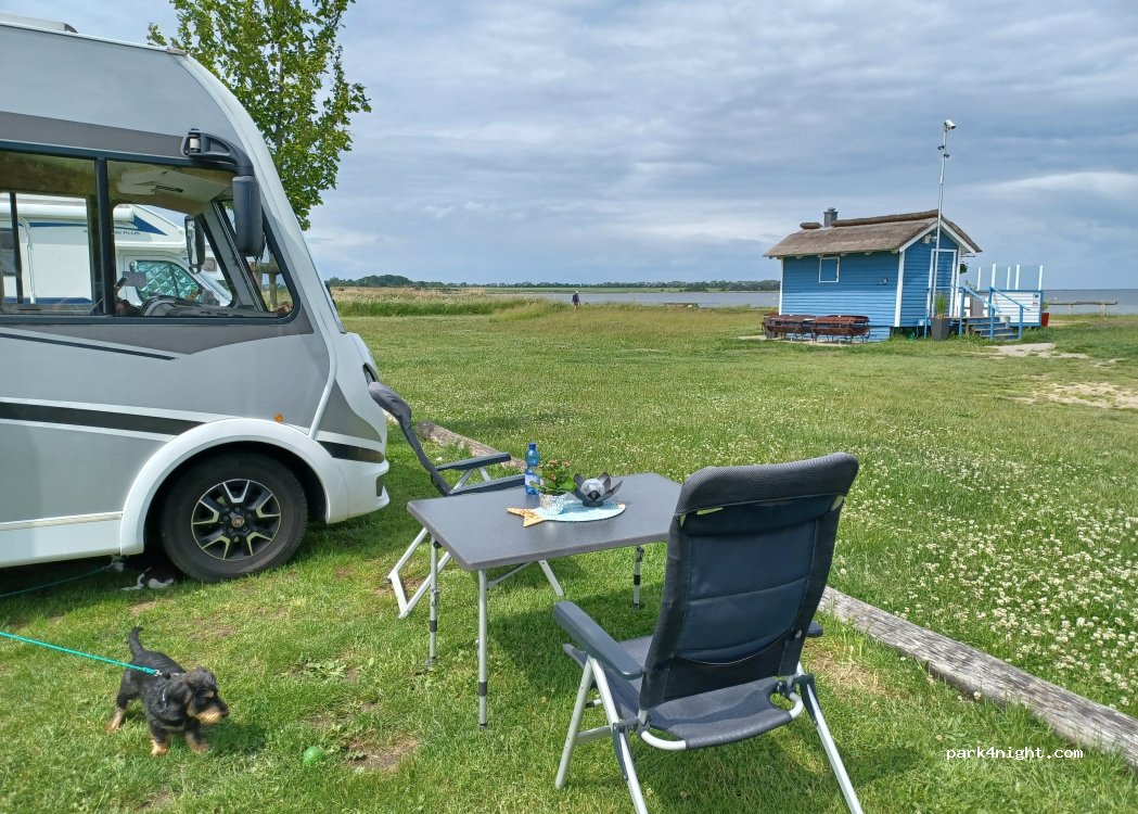 Boiensdorf parking space. Nice location right on the Salzhaff. Very friendly operators who also offer a small snack on site. It should be noted that the front part is a normal parking lot and the parking space only begins behind a small ditch. Season from April 16 - 16.10.