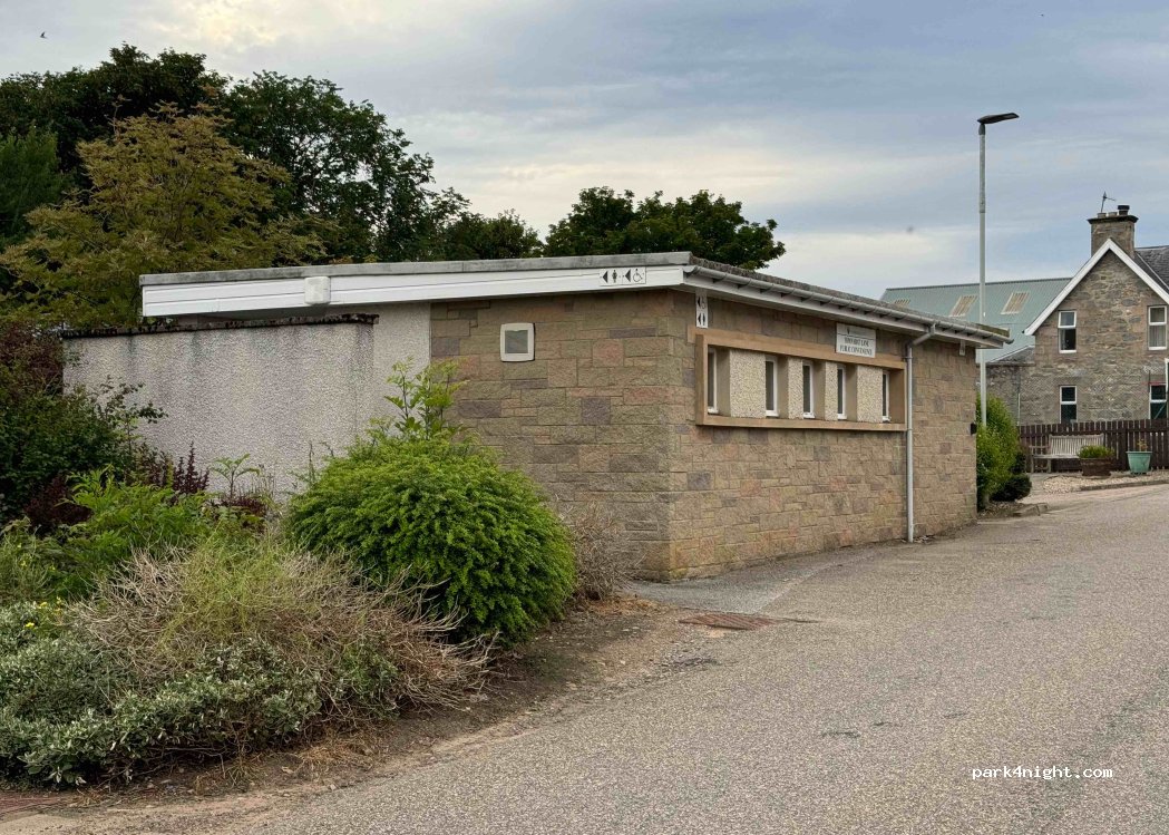 Lovely little village, cracking little whisky shop(save your pennies boys). The public toilets are a great bonus but please consider a generous donation. The location is spot on for the local amenities. My only negative would be that the local pubs don't sell cask ales out of season. I would return. Also consider the bowling club around the corner with toilets and electric.