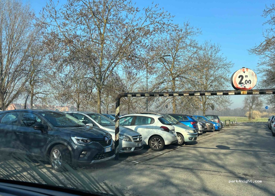 Nous avons dormis ici pendant 1 nuit car nous étions sur Milan la journée pour visiter, pas loin du stade San Siro. Parking hauteur à 2m donc petit fourgon aménagé peuvent passer. Un grand parking de plus de 50 places, nous avons eu aucuns problèmes. La nuit a été calme. Et il est juste à coter d’un sentier de promenade super jolie. Agréable pour nous et pour les chiens ! Nous recommandons !! Car dans Milan très compliqué pour stationner et pour dormir en sécurité !