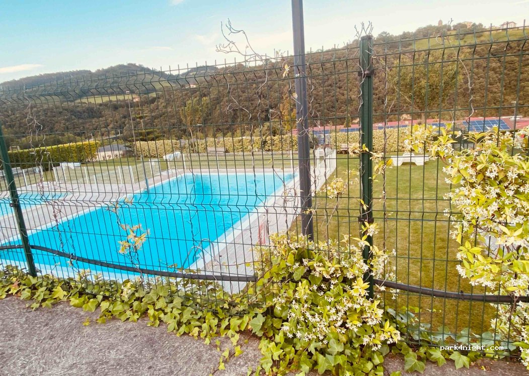 Joli camping, calme et bien entretenu, les sanitaires sont propres, deux machines à laver et deux sèche-linges à pièces sont un plus, jolie piscine, les emplacements impeccables tout est bien pensé, une petite alimentation pour les oublis est bien pratique, tout pour pouvoir se reposer lorsque l'on est sur la route. 20 € deux personnes, 1 camping-car, électricité comprise avec la carte Asci