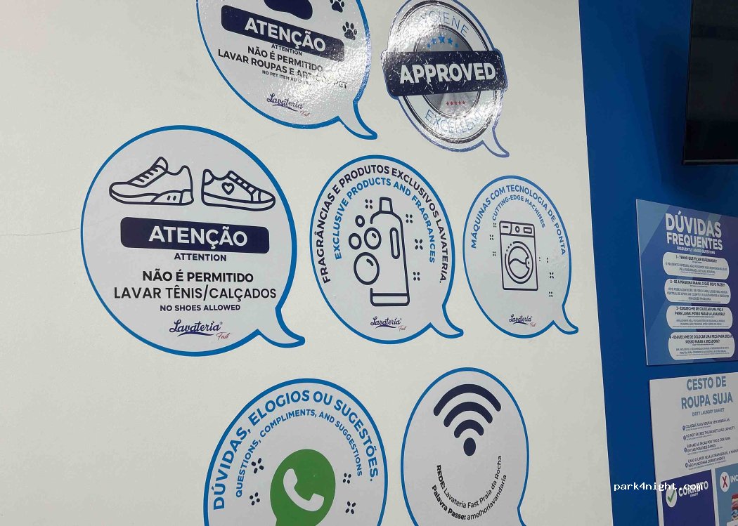 Lavandería abierta todos los días los 365 días del año. Hay 3 lavadoras de 30 minutos de lavado, pero no se puede elegir la temperatura de lavado. También hay 4 secadoras de 40 minutos. Pago con tarjeta de crédito o monedas. Hay enchufes disponibles si necesitas cargar tu teléfono u otro... lavandería muy limpia. Varios aparcamientos cerca, aparcamos en un aparcamiento a 2 minutos a pie con nuestra autocaravana.
