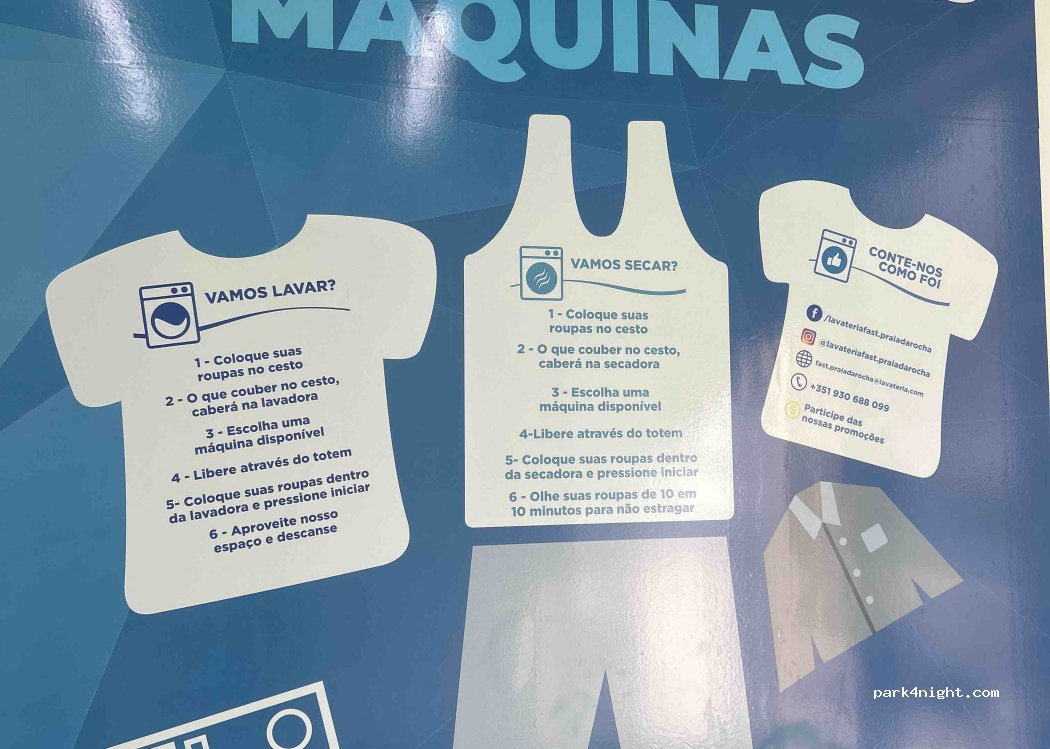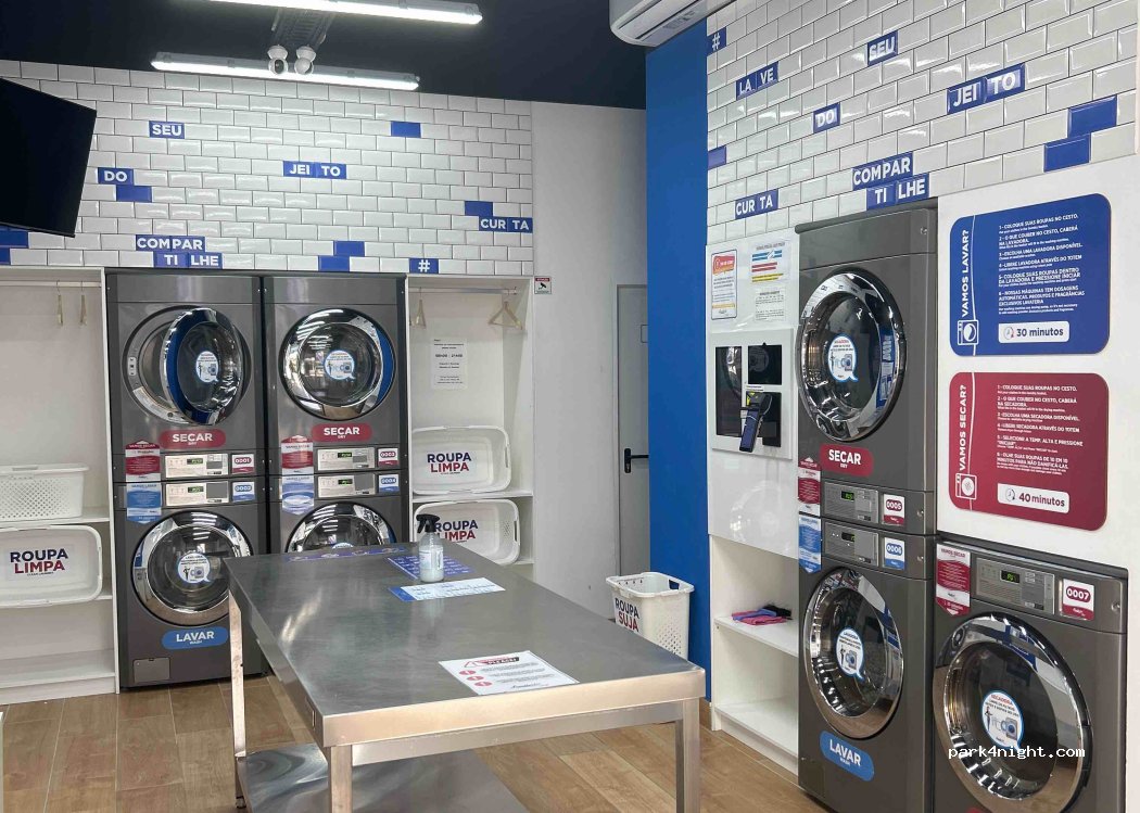 Laundromat open every day 365 days a year. There are 3 washing machines 30min of washing, however you cannot choose the washing temperature. There are also 4 dryers for 40min. Payment by credit card or coins. Sockets are available if you need to charge your phone or other... very clean laundromat. Several parking lots nearby, we parked in a parking lot 2 minutes walk away with our camper van.