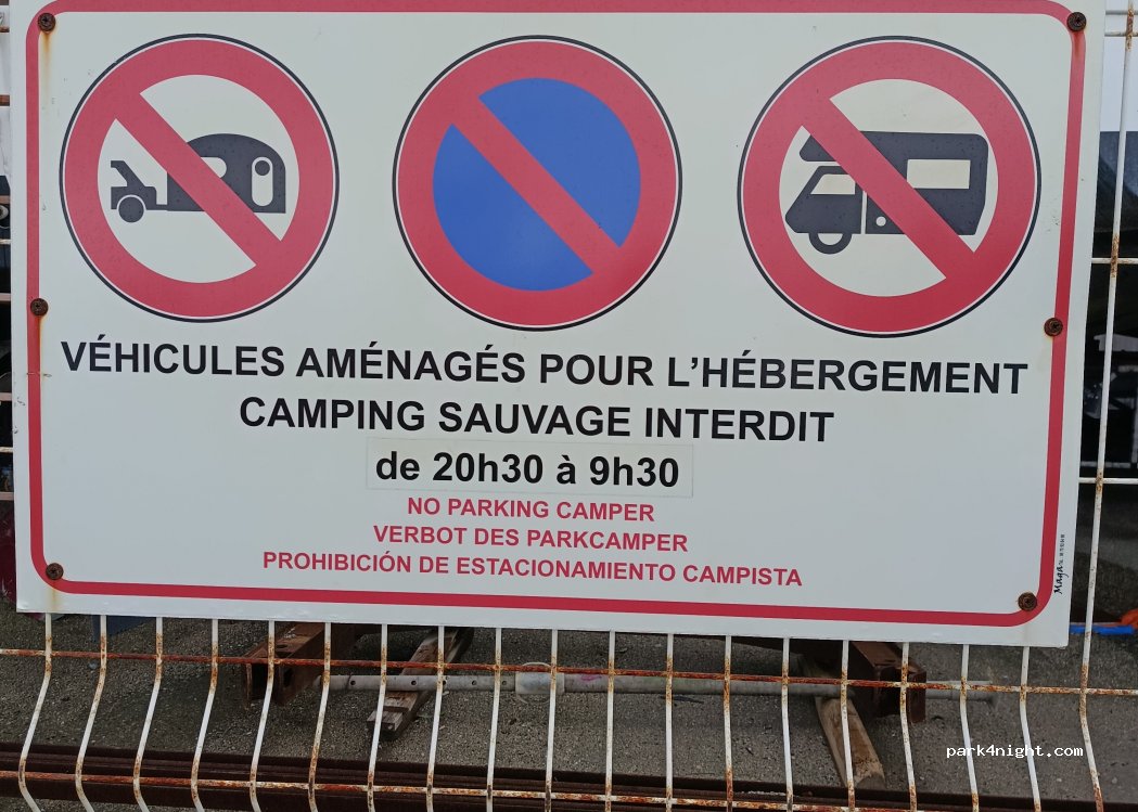 attention interdit au véhicule aménagé camping car la nuit de 20h30 a 9h30