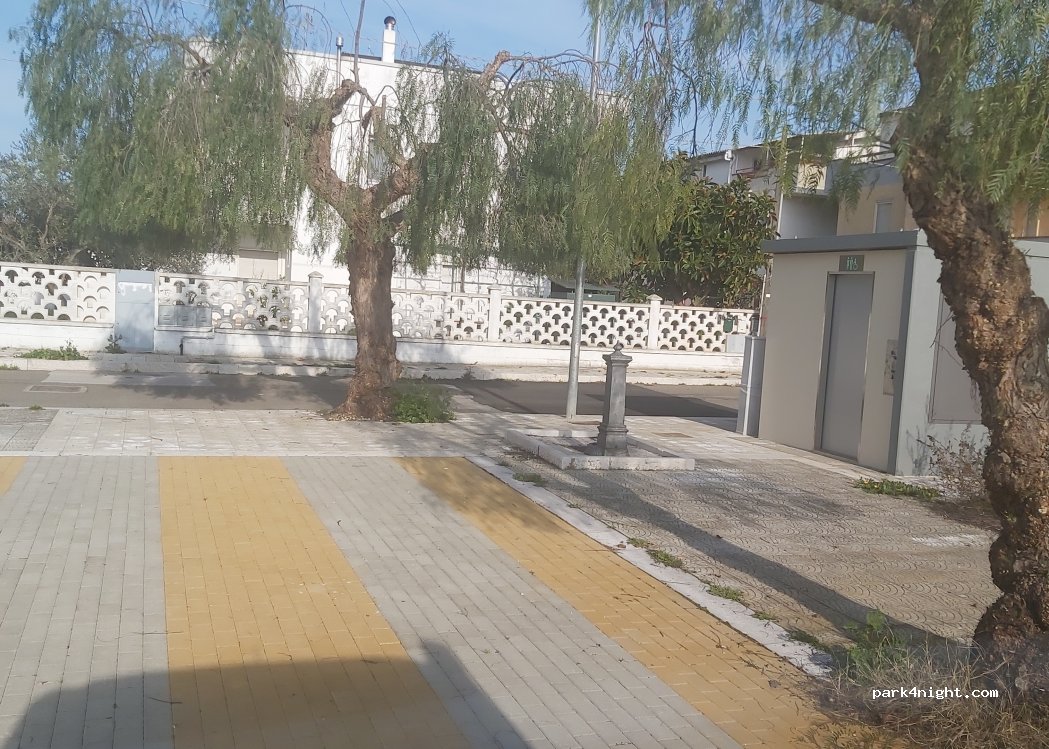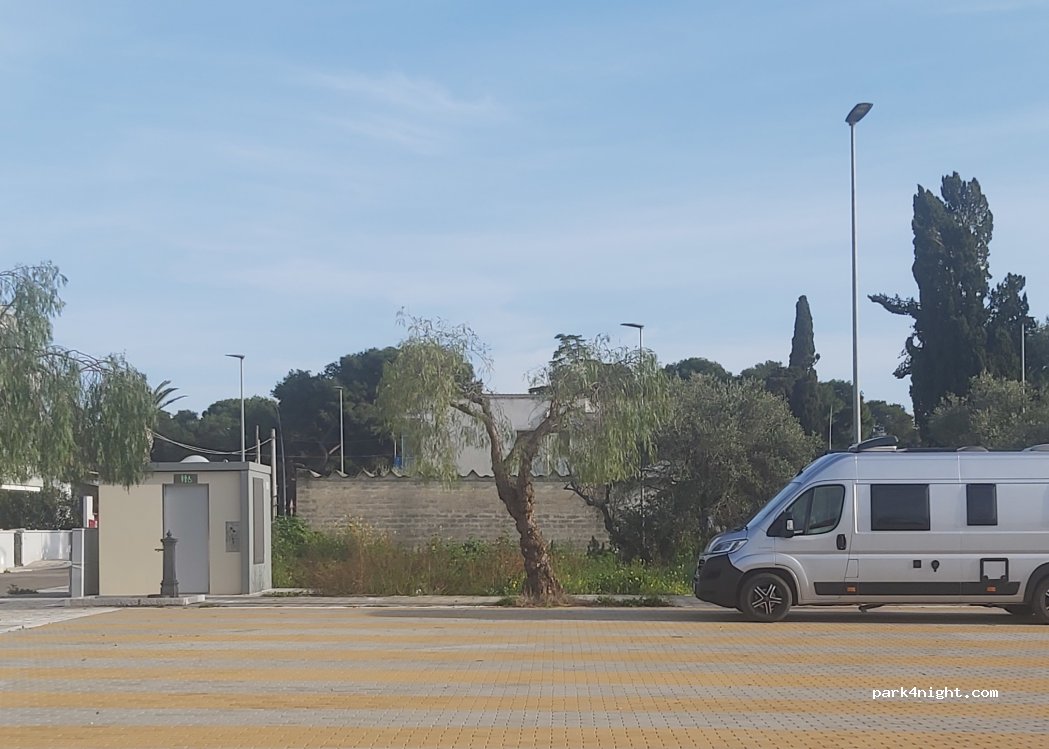 parcheggio vicinissimo al mare, non a pagamento, enorme, non a pagamento e molto tranquillo, in mezzo alle case ma ben distanziato, traffico pressoché inesistente, ci abbiamo passato 2 notti, perfettamente pianeggiante,veramente top. unico neo esposto al sole, lato non verso il mare un poco ombreggiato verso sera.