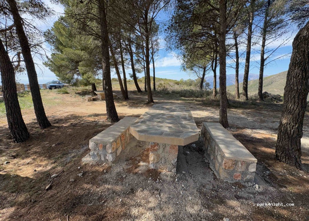 Endroit très calme avec vue superbe sur la méditerranéen. Nous étions seuls. En revanche accès difficile par une route qui devient un chemin rocailleux très pentu, la golf est passée! Probablement impossible en cas de pluie sans 4x4. Nous avons du quitter les lieux précipitamment juste après le repas du midi en raison d’une invasion de guêpes. Donc méfiez vous au moment de sortir des aliments.