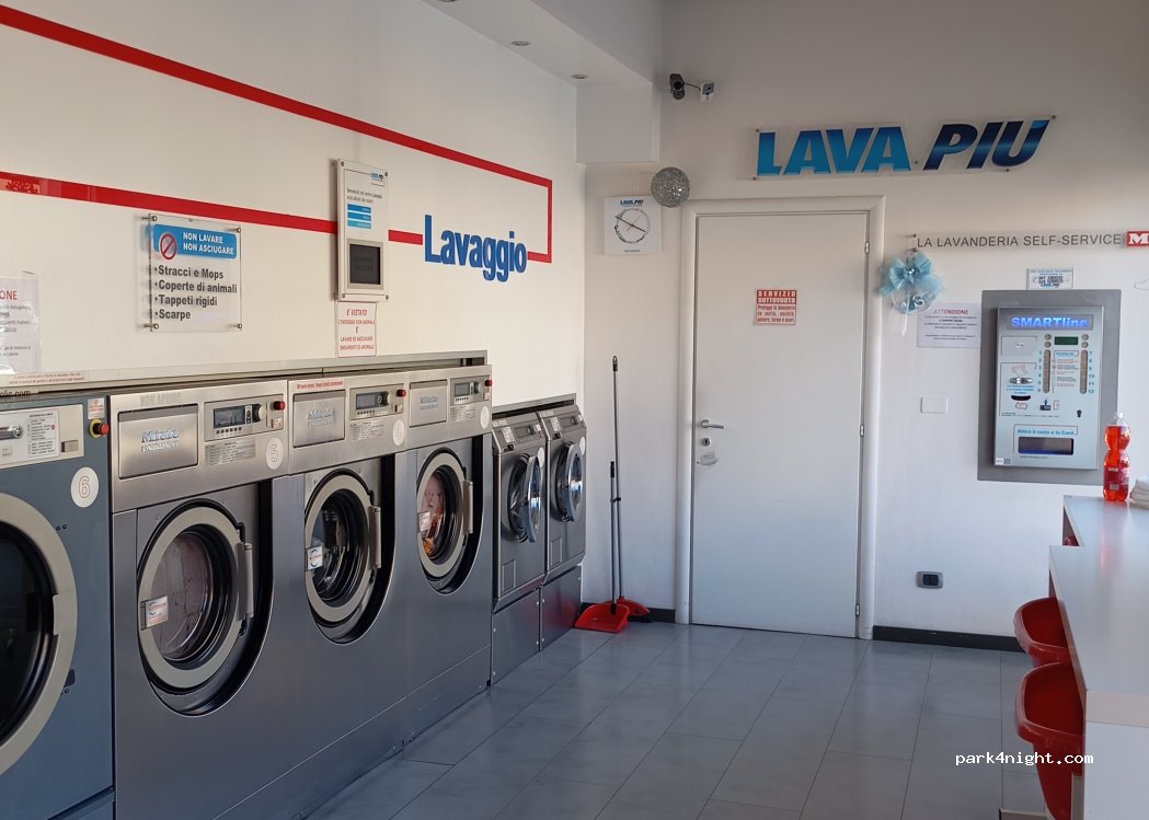 Lavandería automática lava piu, máquinas pequeñas y grandes. Posibilidad de aparcamiento delante. Pago en efectivo.