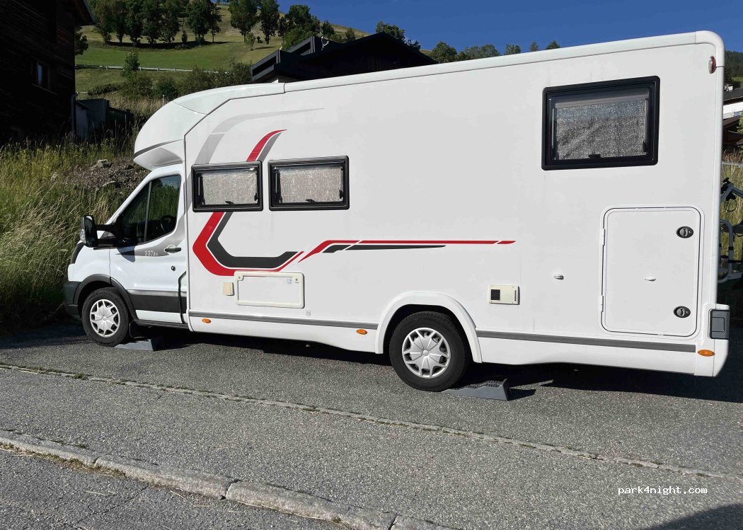 Kostenloser Parkplatz am oberen Ende des Dorfes. Die Zufahrt ist etwas bergauf, aber nichts, was ein 7 m langes Wohnmobil nicht bewältigen könnte. Ohne Gebote und Verbote. Es liegt etwas abschüssig, aber es gibt dort einen Despar-Supermarkt, Restaurants und eine wunderschöne Aussicht über das gesamte Tal. Wir haben die Nacht ohne Probleme verbracht.