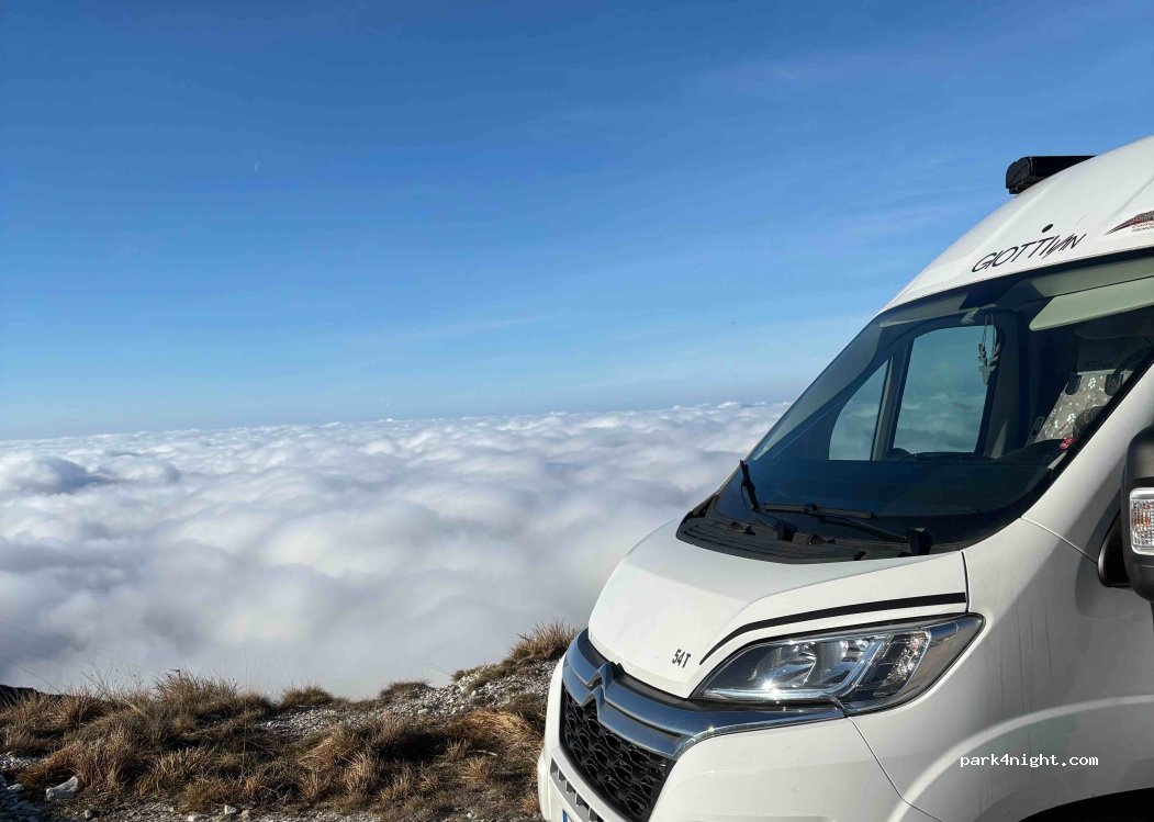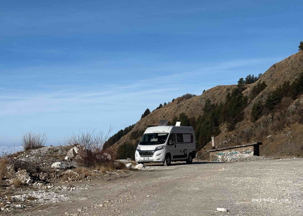 posto tranquillo con vista magnifica sulle montagne, sulle cave e sul mare. da qui partono due sentieri verso due vette molto suggestive. la strada per arrivare è un po dissestata ma andando piano non abbiamo avuto problemi. ad aprile la notte è molto tranquilla e durante il giorno c'è un leggero traffico di escursionisti. ho letto di eventuali furti ma a noi non è successo nulla. consigliato!