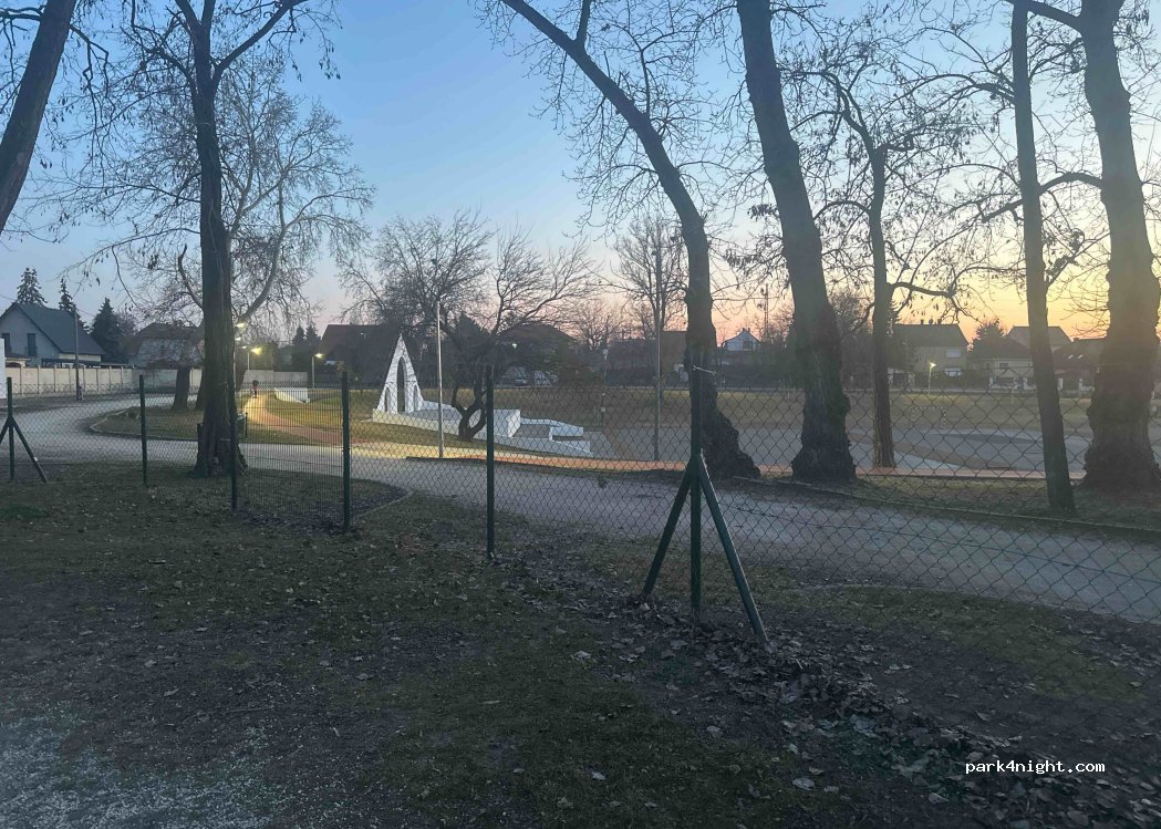 Small parking lot next to a sports and playground, ideal for an overnight stay.