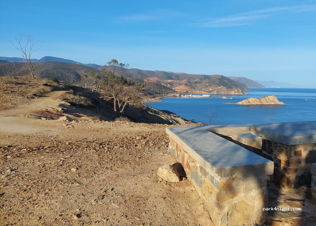 L'espace est suffisamment grand pour permettre plusieurs possibilités de stationnement sans être les uns sur les autres. En retrait de la route qui mène à la plage en contrebas et qui est un cul de sac, donc peu de passage (en tout cas hors saison). Nous avons passé ici une très bonne nuit.