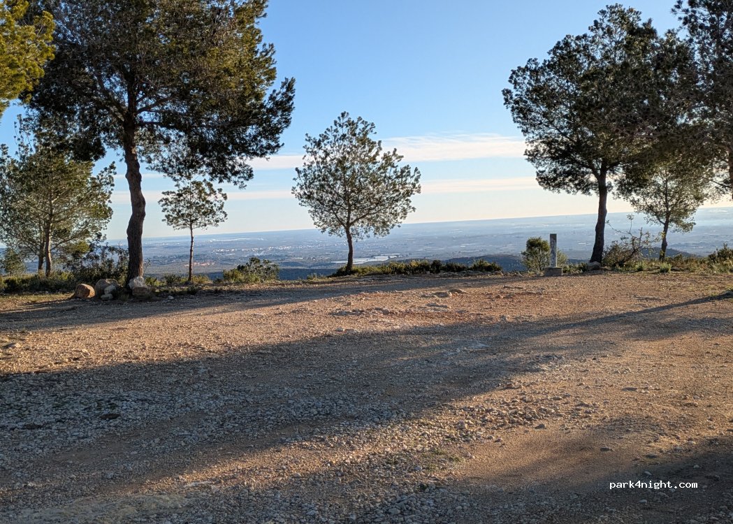 Una pequeña zona de grava bajo los árboles con una vista maravillosa. Sólo pasó un vehículo por la mañana. El lugar es tranquilo y apartado. Hay dos o tres lugares donde los vehículos más pequeños pueden aparcar cómodamente.