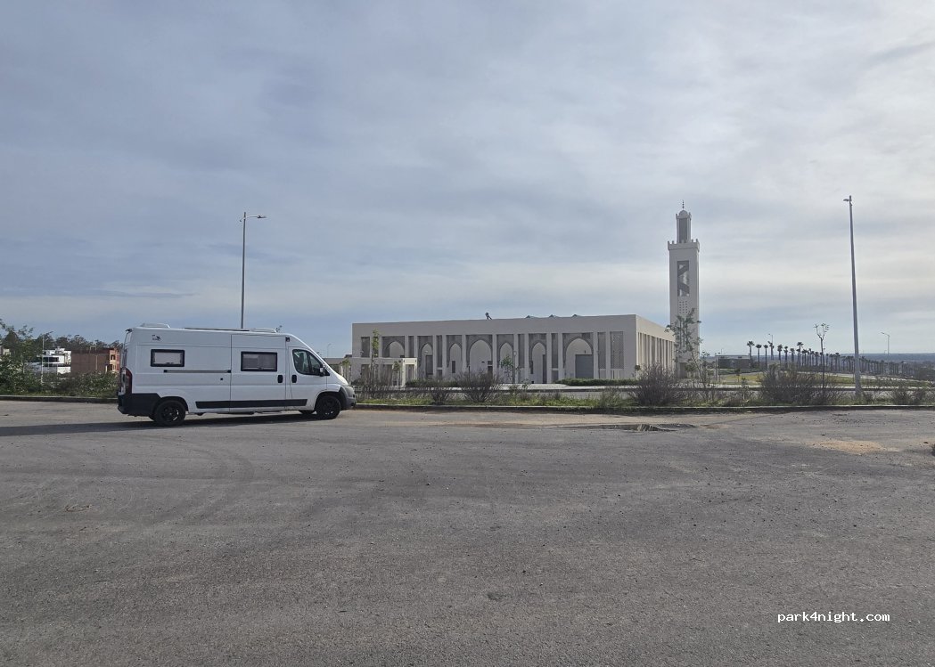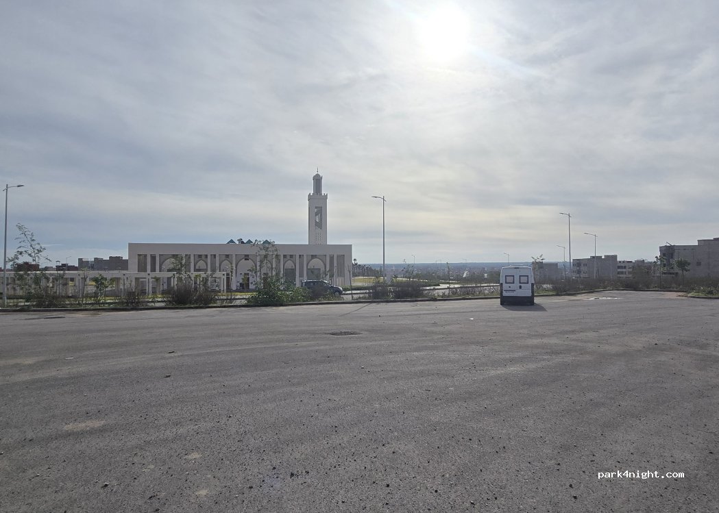 The mosque's large, asphalted and completely flat parking lot is located in a very quiet area where a huge development is currently under construction, with plenty of safe parking.