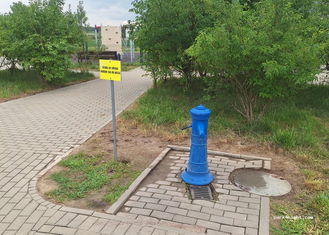Są trzy niebieskie hydranty - jeden z nich działa - Przy parkingu TIR. Woda zdatna do picia.