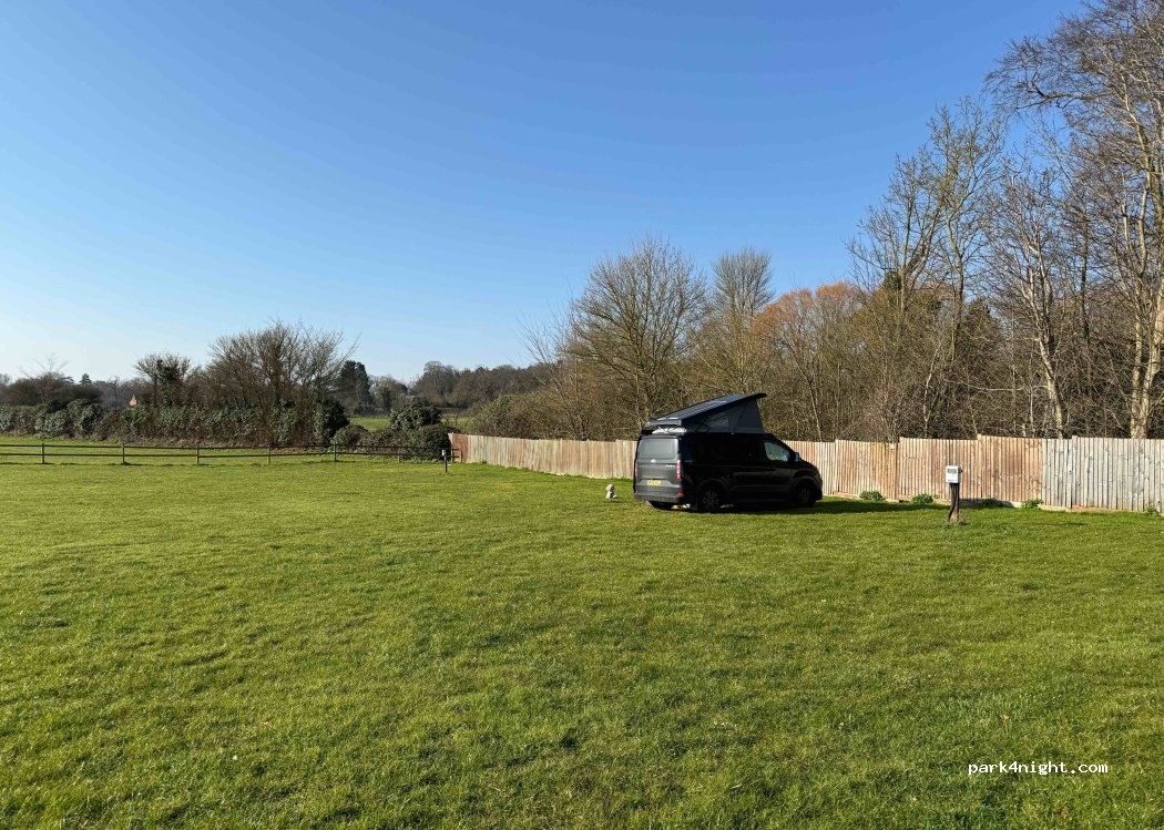 Fantastic campsite with slightly sloping grass field and 5 van CL. There is an onsite bar and breakfast/snack bar open in high season. Pub is 10 minutes walk and site is handy for Holkham Hall & Wells Next Sea. They also do livery so you can even bring your horse camping!