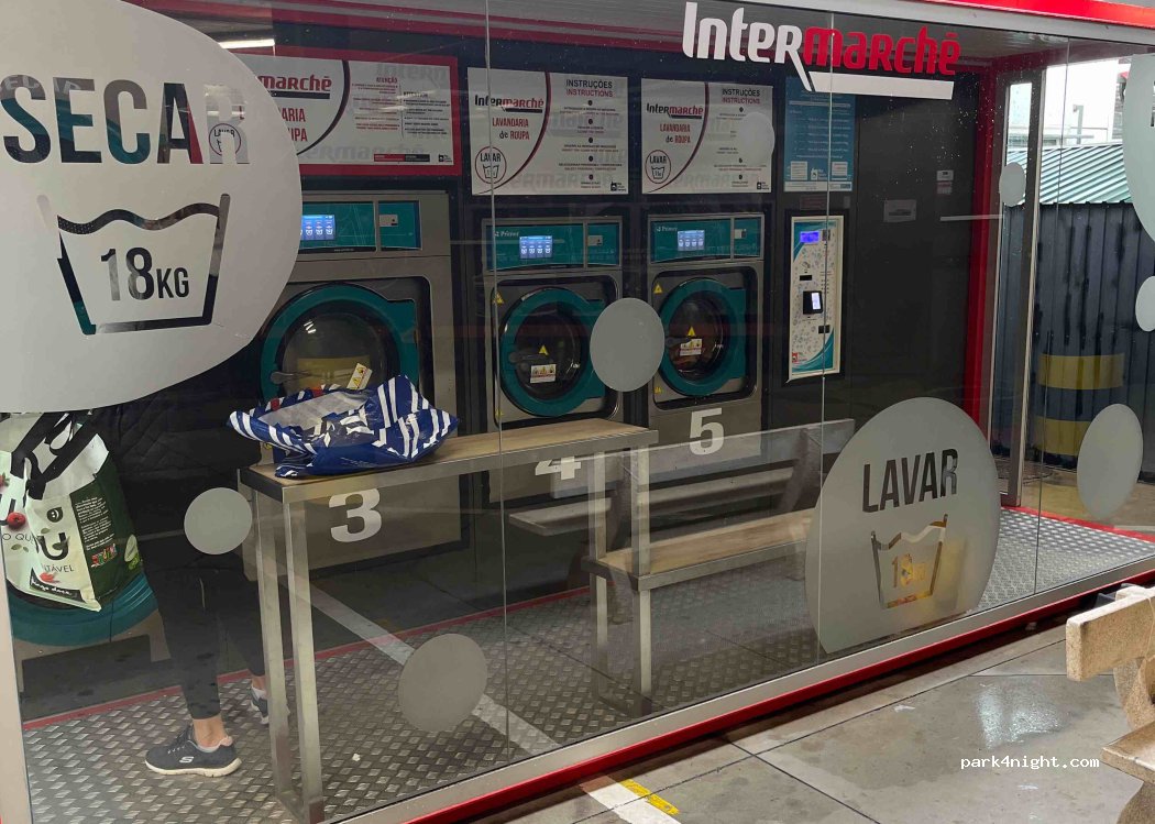 Intermarché laundromat, there are 3 18kg washing machines and 2 11kg. 2 large 18kg dryers. Payment by credit card or cash
